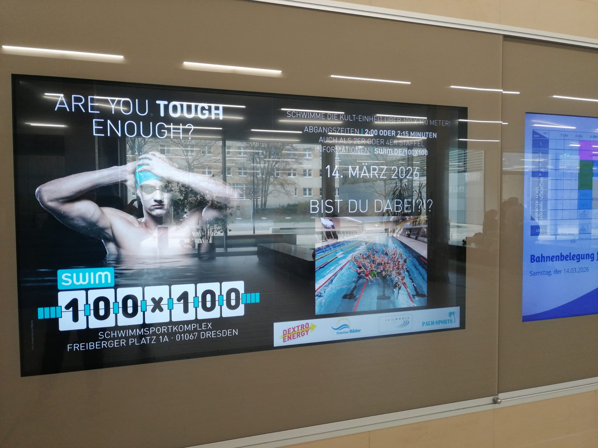 geht, sondern um das gemeinsame Erreichen eines Ziels: 100 x 100 Meter einzeln oder in Staffeln an einem Abend zu schwimmen.